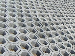 3、從下邊沿開始聯(lián)鎖鋪設(shè)三行聯(lián)鎖式護坡磚,磚的長度方向沿著水流方向反向鋪設(shè),下沿一行磚有一般砌入趾墻中,與毛石或混凝土趾墻相錨固,下沿的第二行聯(lián)鎖磚的下邊沿與趾墻墻面相交。